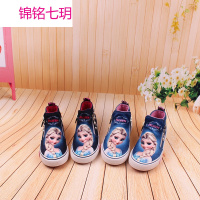 锦铭七玥2018春季新款温州精品童鞋3D卡通冰雪奇缘公主鞋中帮珍珠牛仔鞋