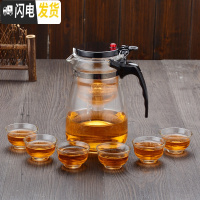 三维工匠飘逸杯耐热全拆洗功夫泡茶壶家用冲茶器过滤内胆玻璃茶壶套装茶具 大肚杯配6个玻璃杯子