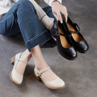 2026春季新款头层牛皮玛丽珍单鞋粗跟魔术贴浅口舒适小皮鞋妈妈鞋