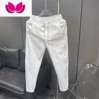 七斓新款哈伦裤男小脚休闲牛仔裤纯色百搭潮流帅气白色九分束脚裤