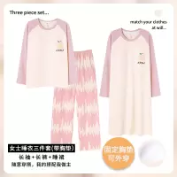 三件套女士秋冬季棉质长袖可爱卡通休闲宽松睡裙家居服套装可外穿