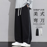 YANXU高街美式卫裤男夏季新款港风宽松休闲裤子潮牌简约百搭直筒黑色裤