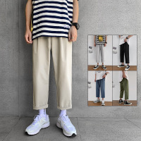 直筒薄款九分休闲裤子男港风纯色简约大码男装胖子哈伦裤夏季新款
