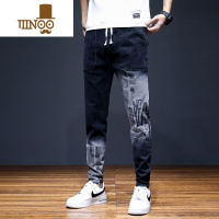 YANXU夏季九分牛仔裤男士韩版修身小脚裤潮牌男款款黑色哈伦男裤子