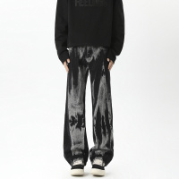 扎染黑色牛仔裤男高级感潮牌美式品质宽松时尚轻奢百搭青年微喇裤