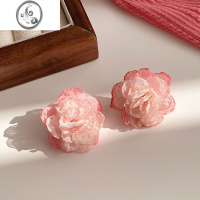 JiMi多巴胺玫红耳环女高级感气质小众设计耳钉轻奢花朵网红时尚耳饰夏
