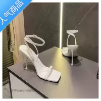 SUNTEK法式优雅时尚珍珠高跟鞋2023年夏季方头露趾水钻一字带细跟女凉鞋