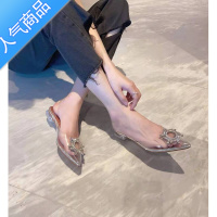 SUNTEK2023春夏季新款尖头水钻平底凉鞋女水晶高跟鞋包头透明细跟高跟鞋