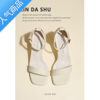 SUNTEK[林大叔]黑色凉鞋女夏季2023年新款方头露趾一字扣带高跟鞋细跟