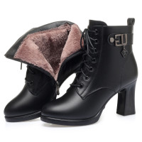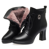 冬季新款高跟短靴妈妈棉鞋粗跟厚底防水台加绒防滑女士单靴子