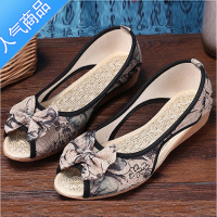 SUNTEK春夏新款老北京布鞋民族风中年坡跟透气耐磨平底浅口软底凉鞋女鞋