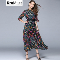 Kruidvat2017女装新款夏几何喇叭袖蕾丝拼接雪纺连衣裙M027花色