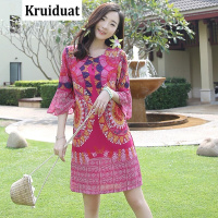 Kruidvat夏季波西米亚七分喇叭袖长款连衣裙Q002