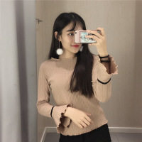 珂依舍2017秋装新款2017秋冬装新款韩版修身拼色套头毛衣女喇叭袖针织打底衫上衣