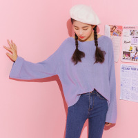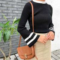 2017新款秋季韩版宽松显瘦套头针织衫女喇叭袖学生百搭圆领薄款打底毛衣潮