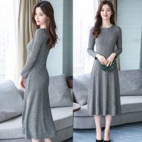 一步打底裙女装修身秋冬新款欧美纯色长袖长款针织毛衣连衣裙灰色