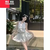 YIBUSHENG韩系白色polo领衬衫连衣裙女季设计感显瘦短裙无袖收腰包臀裙子