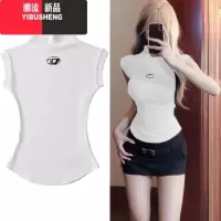 YIBUSHENG美式复古半高领正肩无袖T恤女季纯欲风收腰显瘦辣妹短款上衣