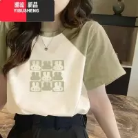 YIBUSHENG小众别致拼接上衣2024新款果绿色短袖t恤女宽松圆领百搭洋气