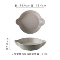 家柏饰(CORATED)北欧陶瓷双耳焗饭长方形烤碗创意烘焙烤盘家用烤箱菜盘子餐具 椭圆形烤盘-撞色米粉