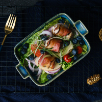家柏饰(CORATED)北欧陶瓷双耳焗饭长方形烤碗创意烘焙烤盘家用烤箱菜盘子餐具 长方形烤盘-撞色绿