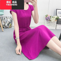 YIBUSHENG有口袋小个子纯色棉绸连衣裙季时尚外穿大码显瘦中长款沙滩裙