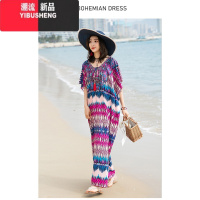 YIBUSHENG沙滩裙度假风波西米亚长裙大码宽松胖mm显瘦遮肉仙连衣裙女
