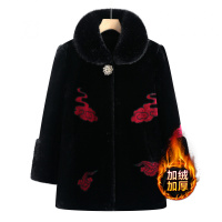 妈妈冬装仿水貂绒外套中老年女装加绒加厚棉服奶奶绣花毛呢大衣