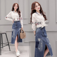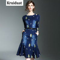Kruidvat欧洲站2017春装新款女装重工刺绣牛仔连衣裙中长款修身包臀鱼尾裙B076蓝