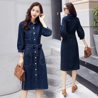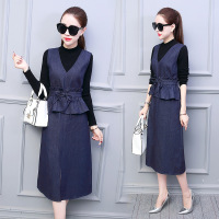 薇侣2017秋装新款女牛仔连衣裙韩版时尚秋背带裙中长款百搭两件