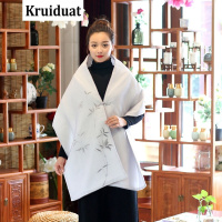 Kruidvat 手绘清竹蒙纱丝棉中式披肩外套雅灰色W034QN 灰色 均码