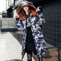 顺崇2017冬季新款韩版中长款迷彩棉衣女棉服棉袄厚棉大衣外套