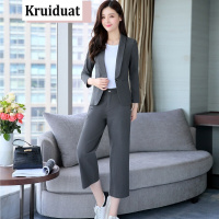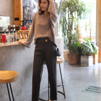 奈琴尔2017秋季新款女装棉麻长袖外套阔腿裤时尚套装 深灰色 XL