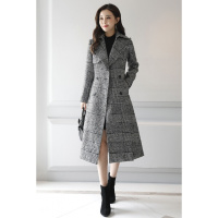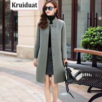 奈琴尔2017秋冬新款女装韩版修身毛呢大衣双面女式羊毛呢中长款外套 B01 灰色 L