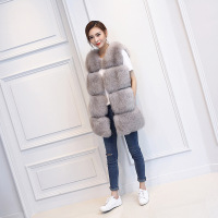 旗下秋冬新款海宁真兔毛皮草外套中长款女七分袖修身促销深灰色中长款