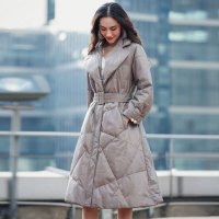 海宁真皮皮衣冬绵羊皮真皮羽绒服女中长款修身外套厚灰色CYDDWQE