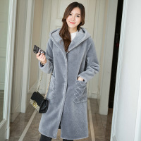 旗下冬季新款羊毛皮草外套女连帽长款羊剪毛大衣77灰色