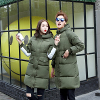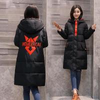 顺崇2017冬装新款韩版纯色连帽笑脸加大长款女装棉衣8818