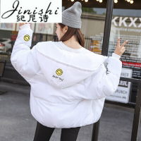 纪尼诗女装新款2018冬季学生学院风棉服羽绒服纯色笑脸加厚短款外套9875加大版