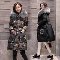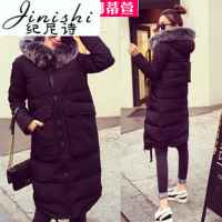纪尼诗女装羽绒服女中长款棉服女2018秋冬性感大毛领连帽加大码女装加肥显瘦棉衣长款过膝棉
