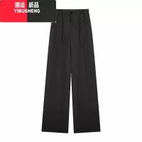 YIBUSHENG宽松休闲裤灰色西装裤女春季高腰裤子显瘦直筒裤高级感垂感拖地裤