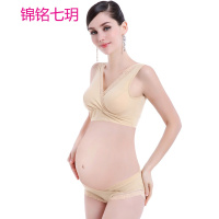 锦铭七玥花边孕妇套装低腰纯棉女士大码全棉托腹裤 无钢圈交叉哺乳文胸