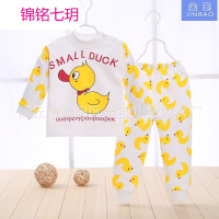 锦铭七玥春季男童女童秋衣秋裤全棉婴儿高腰内衣内裤衣服护肚套装