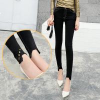 薇侣2017新品秋冬新款黑色裤脚装饰显瘦修身打底裤女