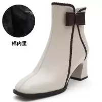 秋冬季新款粗跟中筒靴子女加绒棉鞋中跟尖头小短靴复古真皮鞋
