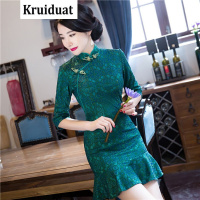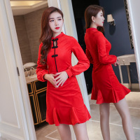 eosciy/Kruidvat2017春季新款小清新文艺少淑女士性感时尚鱼尾裙日常旗袍连衣