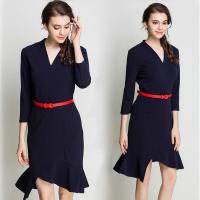 Kruidvat欧洲站2017春季女装新款时尚七分袖连衣裙修身显瘦中长款鱼尾裙潮B076