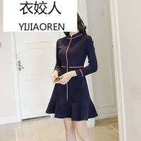 Kruidvat 奈琴尔2017春装新款V领镶钻鱼尾裙长袖修身连衣裙BT