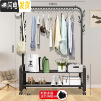 敬平简易衣帽架双杆式晾衣架落地室内移动挂衣架子家用卧室衣服收纳架 125cm-[升级款]黑色双杆+单层置物网+滑轮底座