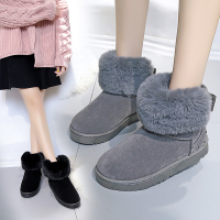 秋冬兔毛雪地靴绒面短靴平底女靴子磨砂冬靴加厚短筒棉鞋女鞋